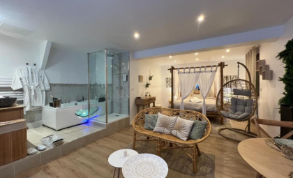 🛁 Immergez-vous dans un jacuzzi privatif, testez une douche immersive avec pommeau sensoriel ou baignoire balnéo… Et laissez-vous emporter par une vague de détente et de plaisir à deux. Chaque chambre romantique est équipée d’un linge de lit haut de gamme, parfait pour une nuit inoubliable en toute intimité.