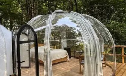 🫧 Bulles Enchantées : Dormir dans une bulle transparente est une expérience féerique, permettant d’admirer les étoiles tout en étant enveloppé dans le confort d’un lit moelleux.